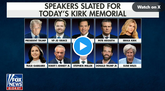 Whatfinger News BOOM! STACKED speaker lineup for Charlie Kirk today: – President Trump – JD Vance – Marco Rubio – Pete Hegseth – Erika Kirk – Tulsi Gabbard – RFK Jr – Stephen Miller – Trump Jr – Susie Wiles Two planes of White House staff flying to Arizona as well! 4 months ago