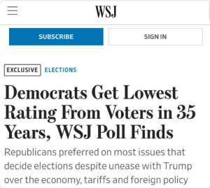 - WSJ Poll: Dems’ Rating Lowest in 35 Years – Newsmax